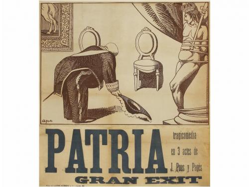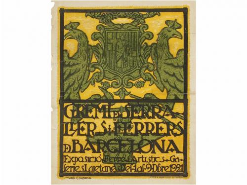 1921. CARTEL. GREMI DE SERRALLERS Y FERRERS DE BARCELONA. EXPOSICIÓ DE GALERIES LAIETANES. Litografía. 71 x 55 cm (27,5 x 21,5 in). Diferentes cortes periféricos, algún desgarro y pequeña pérdida de papel; B-.