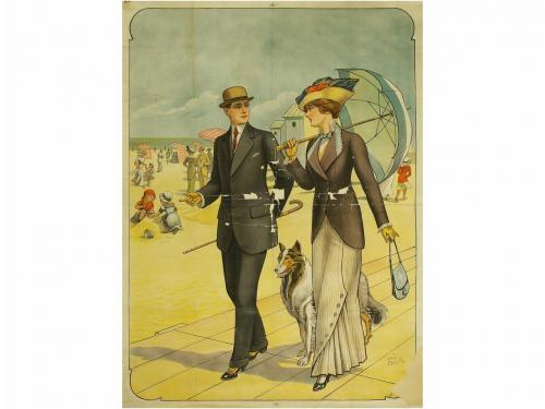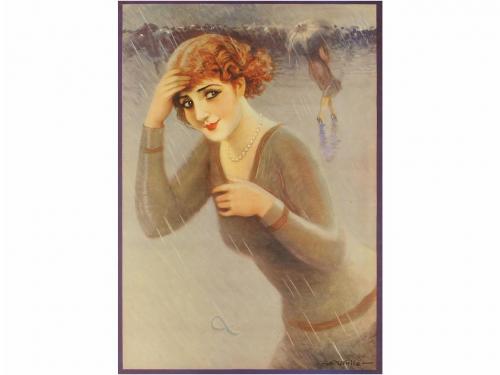 1920 ca. CARTEL. SEÑORA EN LA LLUVIA. Fotograbado. 46,5 x 33 cm (18 x 13 in). A.