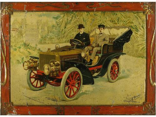 1890 ca. CARTEL. CHAPA METÁLICA. ESCENA COSTUMBRISTA. Chapa metálica cromolitográfica. 28 x 38 cm (11 x 15 in). Pequeñas ralladuras. B.