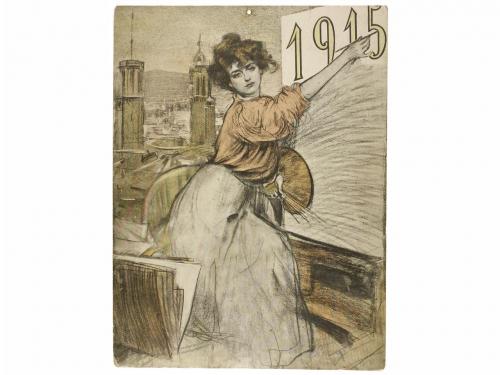 1915. CARTEL. CARTEL CALENDARIO. Litografía inédita, impresa sobre cartulina. 40 x 30 cm (15,5 cm x 11,5 in). A.
