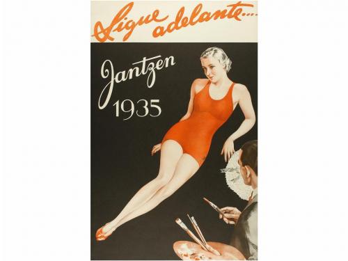 1935. CARTEL. (MODA). SIGUE ADELANTE... JANTZEN 1935. Tríptico publicitario a modo de cartel. Litografía. 41 x 26,5 cm (16 x 10,5 in). A.