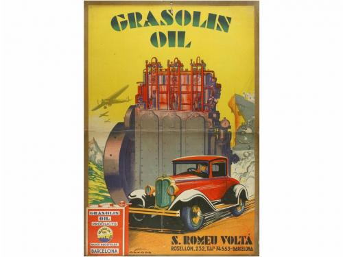 1940 ca. CARTEL. GRASOLIN OIL. S. ROMEU VOLTÁ. Litografía, base en cartoné. 48 x 32,5 cm (19 x 12,5 in). Señal de doblez central, B. (Enmarcado).