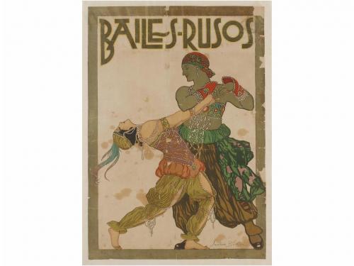 1920 ca. CARTEL. BAILES RUSOS. Litografía. 67 x 47 cm (26,5 x 18,5 in). Restauraciones varias, faltas de papel en los bordes y manchas del tiempo; B-.