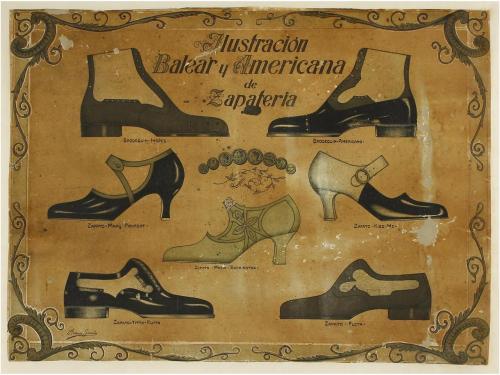 1900 ca. CARTEL. ILUSTRACIÓN BALEAR Y AMERICANA DE ZAPATERÍA. Litografía. 59 x 80 cm (25 x 31 in). Anónimo. Varias restauraciones y pequeñas faltas de papel. Entelado; B-.