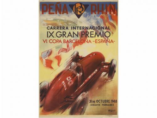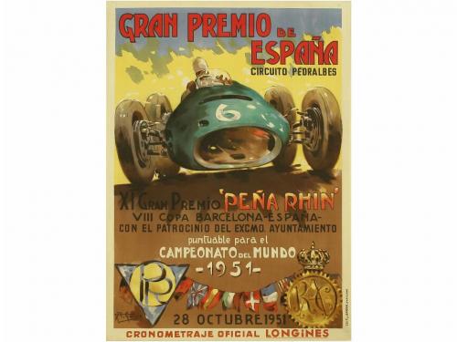 1951. CARTEL. GRAN PREMIO DE ESPAÑA. PEÑA RHIN. Litografía. 54 x 76 cm (21 x 30 in). Entelado; A.