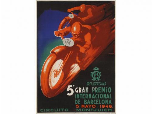 1946. CARTEL. 5º GRAN PREMIO INTERNACIONAL DE BARCELONA. Litografía. 69 x 48,5 cm (37 x 19 in). Entelado; A-.