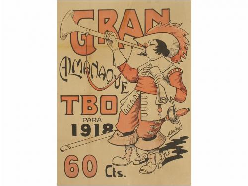 1917. CARTEL. GRAN ALMANAQUE TBO PARA 1918. Litografía. 88 x 64 cm (34,5 x 25 in). Entelado, señales en los pliegues y alguna restauración; B.