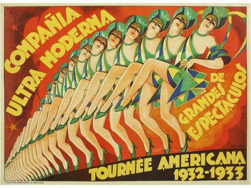 1932-1933. CARTEL. COMPAÑÍA ULTRA MODERNA. TOURNÉE AMERICANA 1932-1933. Litografía. 83 x 118 cm (32,5 x 34 in). Entelado, señales en los pliegues; A-.