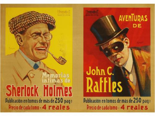 1925 ca. CARTEL. MEMORIAS INTIMAS DE SHERLOCK HOLMES Y AVENTURAS DE JOHN C. RAFFLES. Litografía. Cartel doble. 63 x 89 cm (24,5 x 35 in). Entelado, A-.