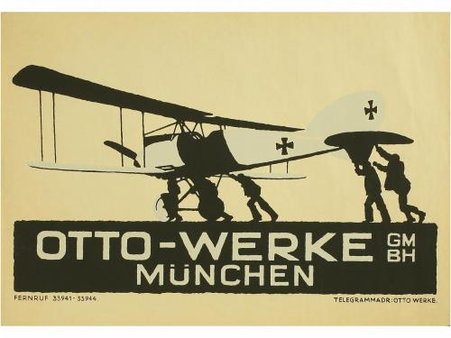1915. CARTEL. OTTO-WERKE MÜNCHEN GMBH. Litografía a dos tintas. Cartel del célebre fabricante de aviones alemán. 62 x 87 cm (24 x 34 in). A.