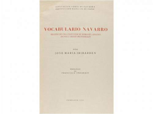 1952. LIBRO. (NAVARRA-LENGUA). VOCABULARIO NAVARRO. SEGUIDO DE UNA COLECCION DE REFRANES, ADAGIOS, DICHOS Y FRASES PROVERBIALES. Prólogo de Fracisco Yndurain. Pamplona: Ed. Gomez, 1952. 4º menor. 667 p. + 1 mapa plegado de Navarra. Enc. en media piel reciente, tejuelo, nervios, conserva las cubiertas originales.