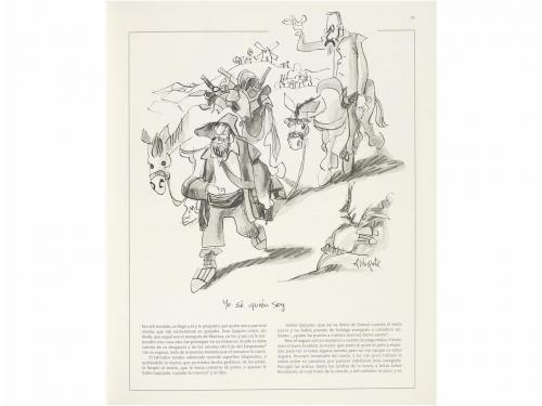 2004. LIBRO. (BIBLIOFILIA-CERVANTINA). EL INGENIOSO HIDALGO DON QUIJOTE DE LA MANCHA. Barcelona: Ed. Planeta, 2004. 2 vol. en Folio. I: 404 p. II: 389 p. Los dos vol. profus. ilustr. con dibujos y capitales de Antonio Mingote. Estudio preliminar y biografía del autor por Martín de Riquer. Dos vol. enc. en terciopelo estampado, cada uno presentado en una petaca. Edición numerada y limitada a 3000 ejemplares.