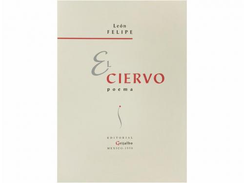 1958. LIBRO. (LITERATURA). EL CIERVO. POEMA. Mexico: Ed. Grijalbo, 1958. Folio menor. 131 p. + 1 h. Ilustr. de Souto, Renau, Sisqueiros, Diego Rivera, Carrington, Remedios Varí, etc. Impreso a dos tintas. Bella enc. en plena piel con guardas de papel al agua, nervios, lomera ligeramente descolorida. Conserva las cubiertas originales. PRIMERA EDICIÓN. Ejemplar núm. 91 de la tirada de 100 ejemplares fuera de comercio.