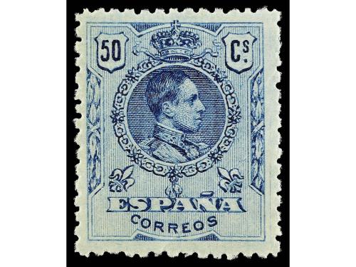 ** ESPAÑA. Ed. 277. 50 cts. azul, numeración A000,000. LUJO.