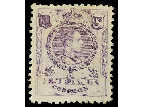 ** ESPAÑA. Ed. 270dmd. 15 cts. violeta SIN DENTAR en tres márgenes, pareja con uno normal. No reseñado, MUY RARO. Cert. CEM.