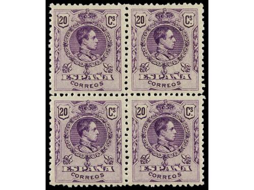 ** ESPAÑA. Ed. 273 (4). 20 cts. violeta A000,000. Bloque de cuatro. LUJO.