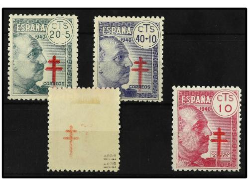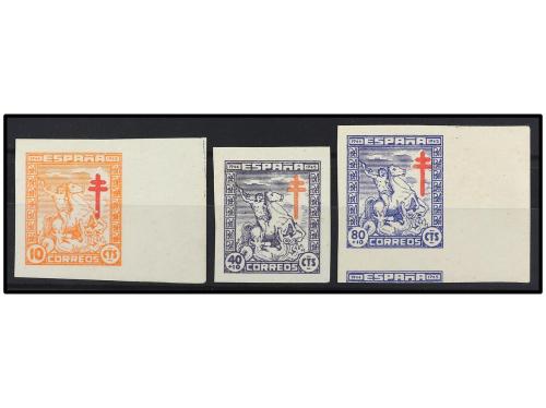 ** ESPAÑA. Ed. 937/9ed. Tres valores, DOBLE CRUZ DE LORENA. Se incluye * 939ed con la Cruz calcada al dorso, no reseñado. Cat. +195€.