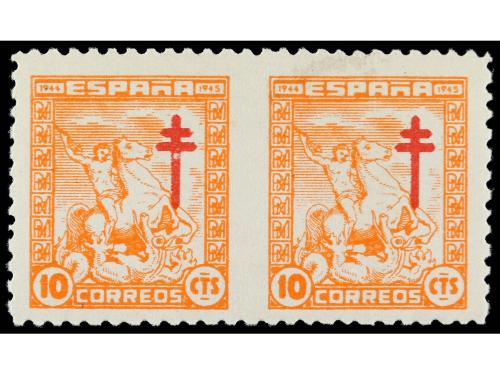** ESPAÑA. Ed. 984sph. 10 cts. naranja. Pareja horizontal SIN DENTAR POR EL CENTRO. No reseñado.