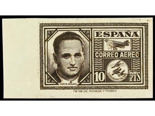 ** ESPAÑA. Ed. 992ccs. 10 pts. castaño negruzco COLOR CAMBIADO SIN DENTAR. RARO. Cert. CEM. Cat. +280€.