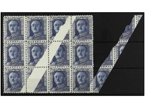 ** ESPAÑA. Ed. 999 (12). 75 cts. azul. Bloque de 12, 6 sellos gran variedad de IMPRESIÓN. RARO.