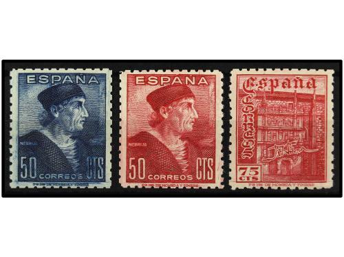 ** ESPAÑA. Ed. 1002cc, 1002cca y 1003cc. 50 cts. azul, 50 cts. rosa carminado y 75 cts. rosa carminado. 3 valores CAMBIOS DE COLOR. RAROS.