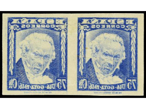* ESPAÑA. Ed. 1007ics (2). 75 cts. azul. Pareja CALCADO AL DORSO SIN DENTAR. No reseñado. Cert. CEM.