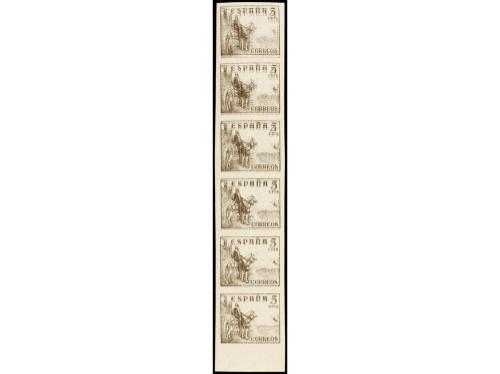 ** ESPAÑA. Ed. 1044sed. 5 c. sepia. Tira de 6 vertical SIN DENTAR y DOBLE IMPRESIÓN. Sólo una hoja conocida. MUY RARA. Cert. GRAUS.