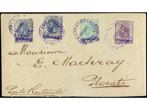 ✉ LEVANTE: CORREO RUMANO. Yv. 1/3. 1896. CONSTANTINOPLA a PLOESTI. Precioso franqueo, al dorso llegada.