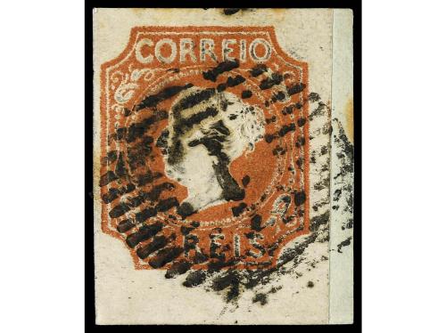 Δ PORTUGAL. Mu. 1. 5 reis castaño sobre pequeño fragmento. Cert. FERCHENBAUER. Cat. 1.600€.