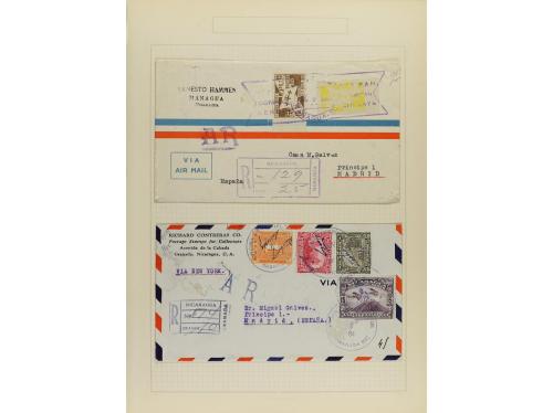 ✉ LOTES y COLECCIONES. 1931-34. NICARAGUA. Conjunto de 20 cartas en hojas de álbum circuladas por Correo Aéreo, diversas marcas y algunos primeros vuelos.