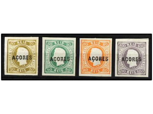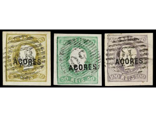 ° PORTUGAL: AZORES. Yv. 3, 4, 6. 20 reis, 50 reis y 100 reis. Muy bonitos.