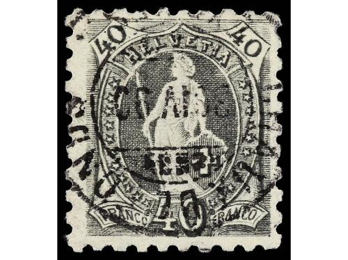 ° SUIZA. Yv. 83. 1888. 40 cts. gris. Dentado 9 1/2. RARO. Cat. 900€.