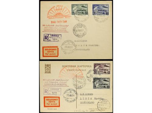 ✉ RUSIA. 1931. Dos tarjetas circuladas por GRAF ZEPPELIN en el vuelo del Polo Norte.