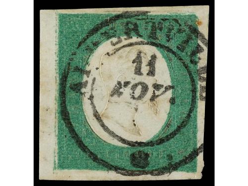 ° ITALIA ANTIGUOS ESTADOS: CERDEÑA. Yv. 7. 1854. 5 cts. verde amarillo. Mat. fechador ALVERTVILLE / *. MUY BONITO.