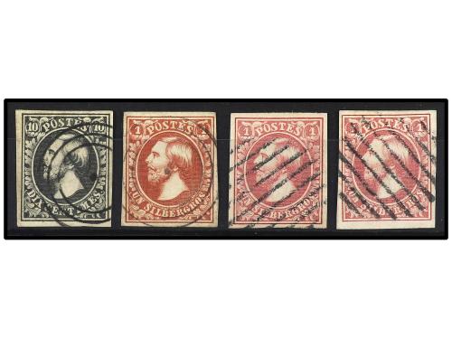 ° LUXEMBURGO. Yv. 1, 2, 2d (2). 1852. 10 cts. negro, 1 s. castaño rojo y 1 s. rosa (2). PRECIOSOS.