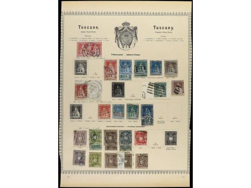 ° ITALIA ANTIGUOS ESTADOS: TOSCANA. 1851-60. Página de álbum con sellos usados con bonitos matasellos, dos sellos con certificado. A. MATL.