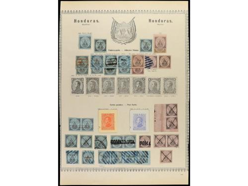 */° HONDURAS. 1865-82. Página de álbum con sellos nuevos y usados, también algún entero postal recortado.