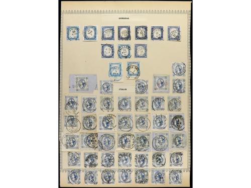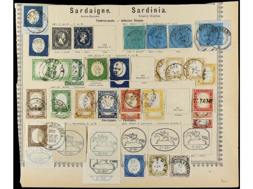 ITALIA ANTIGUOS ESTADOS: CERDEÑA. 1851-63. Página de álbum con sellos usados con bonito matasellos, también "Cavallini" recortados.