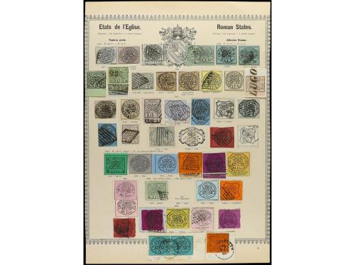 ° ITALIA ANTIGUOS ESTADOS: ESTADOS PONTIFICIOS. 1852-68. Página de álbum con sellos usados, con muy bonitos matasellos.
