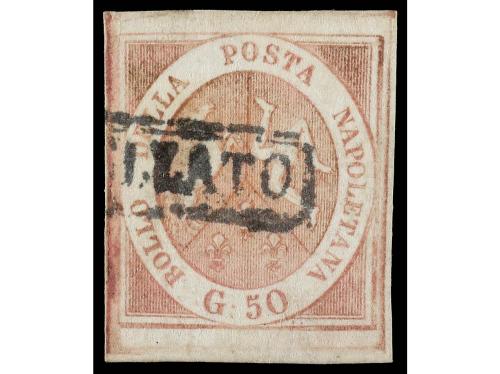 ° ITALIA ANTIGUOS ESTADOS: DOS SICILIAS - NAPOLES. Yv. 7. 1858. 50 gr. rose. Grandes márgenes. MAGNÍFICO EJEMPLAR. Dictamen Eichele.