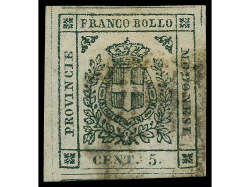 ° ITALIA ANTIGUOS ESTADOS: MODENA. Yv. 7. 1859. 5 cts. verde. Márgenes excepcionales. MAGNÍFICO EJEMPLAR. Cert. E. DIENA.