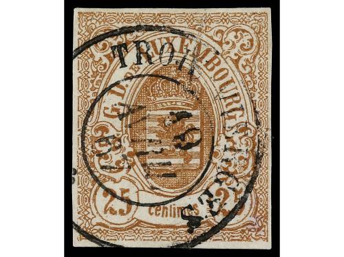 ° LUXEMBURGO. Yv. 3. 1859-63. 1 cto. castaño claro. Mat. fechador LUXEMBURGO. Cert. R. DEMUTH.
