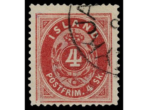 ° ISLANDIA. Yv. 3. 1873. 4 sk. carmín. MUY BONITO.