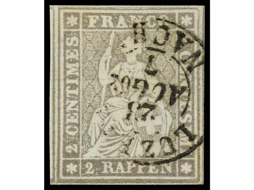° SUIZA. Yv. 25. 1854-62. 2 cts. gris. MAGNÍFICO.