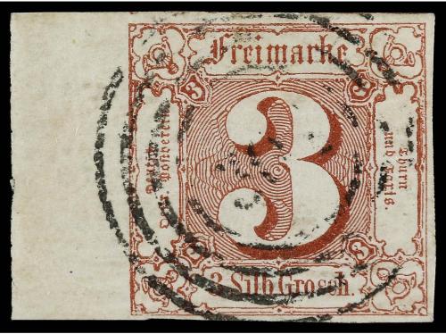 ° ALEMANIA ANTIGUOS ESTADOS: TOUR Y TAXIS. Yv. 11. 1859. 3 sgr. castaño rojo, mat. círculos concéntricos "301". Grandes márgenes, uno borde de hoja. MAGNÍFICO. Dictamen P. SEM.