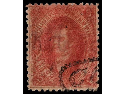 ° ARGENTINA. Yv. 5d. 1862-64. 5 ctvos. rosa sin acento. Mat. ovalado FRANCA. PRECIOSO.