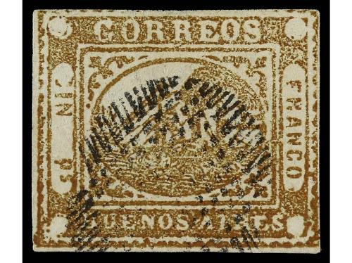 ° ARGENTINA. Yv. 5. 1858. BUENOS AIRES. 4 reales castaño. PRECIOSO. Cert. R. KNEITSCHEL.