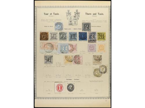 */° ALEMANIA ANTIGUOS ESTADOS: TOUR Y TAXIS. 1851-67. Dos páginas de álbum con sellos la mayoría usados con preciosos matasellos.