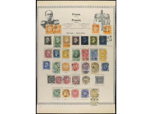 ° ALEMANIA ANTIGUOS ESTADOS: PRUSIA. 1850-67. Tres páginas de álbum con sellos usados, también enteros postales recortados.