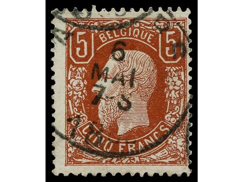 ° BELGICA. Yv. 37. 1869-78. 5 Fr. castaño rojo. BONITO EJEMPLAR. Cert. L. TAVANO.